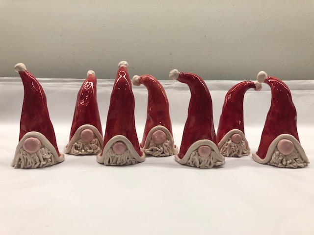 You will hand-build and paint Christmas gonks out of clay. How you decorate yours is up to you.