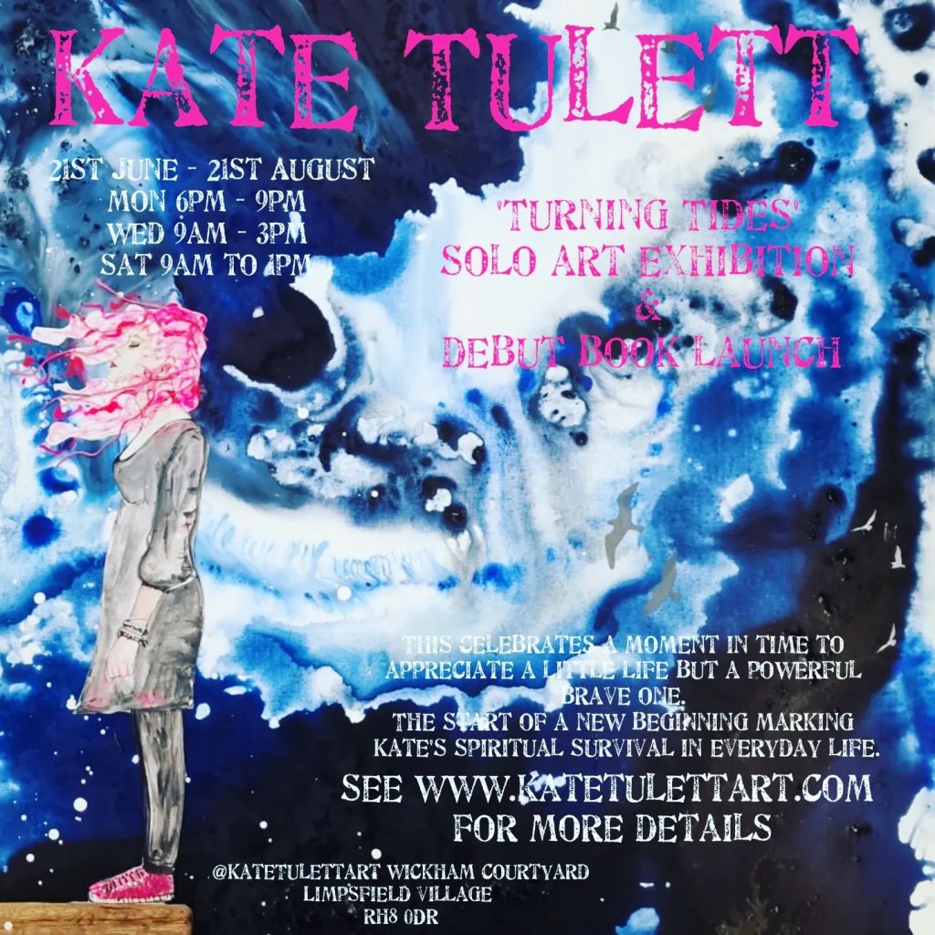 The launch of Kate Tulett’s debut book, Turning Tides, and solo exhibition of originals will be held in her Art for All studio at Wickham’s Courtyard, Limpsfield High Street on 21st June to 21st August, following on from the Surrey Artists Open Studio week and appropriately, the โsummer solsticeโ.