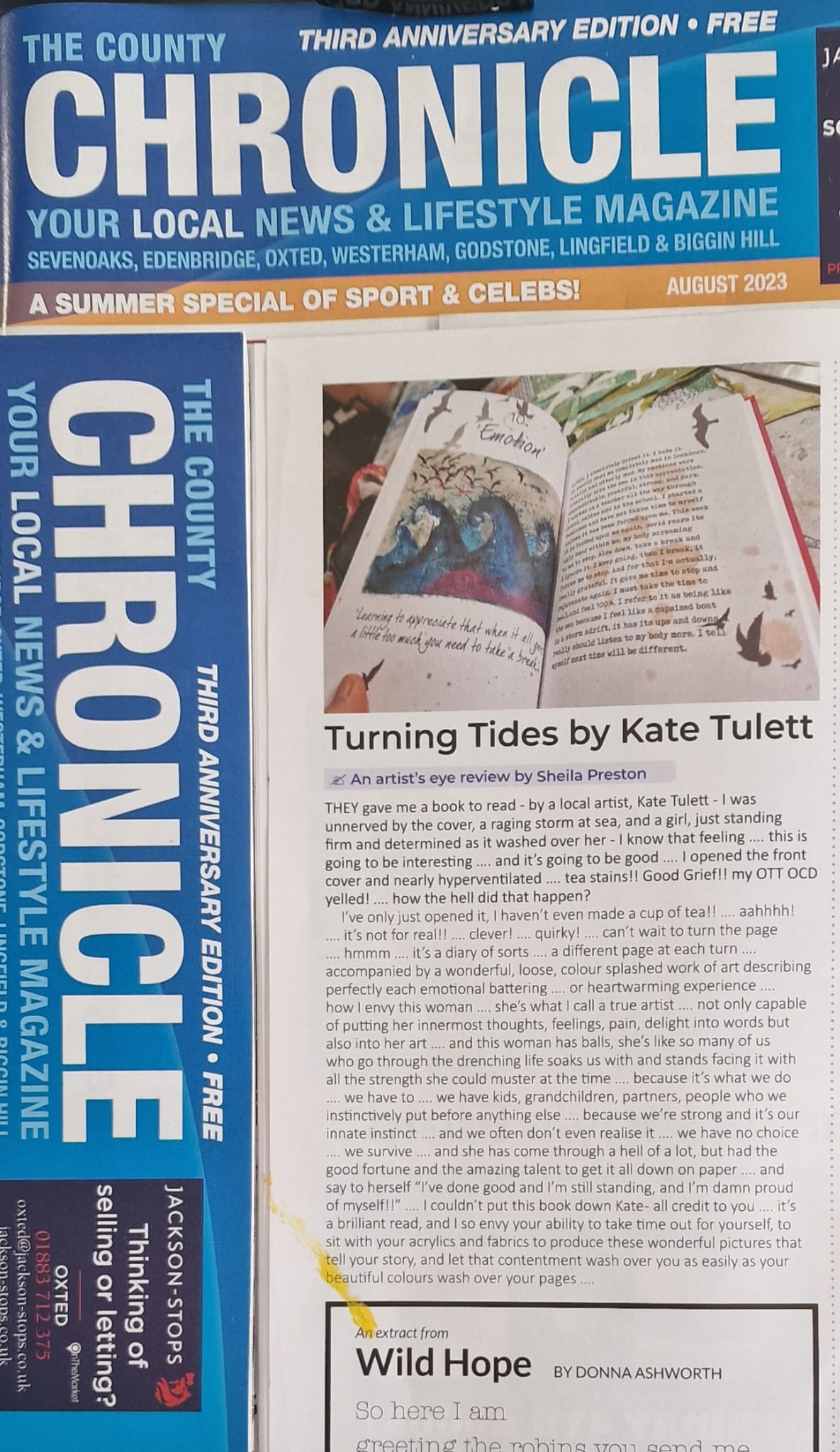 Just wanted to share this amazing review of my book, Turning Tides with you. It was written in the August issue of our local paper, The County Chronicle. This review is by Sheila Preston, someone I have never met before in my life…