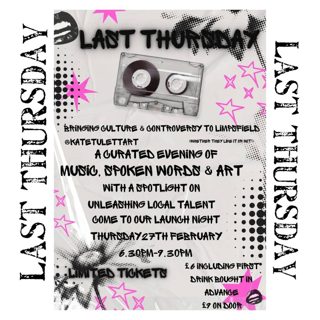 Following the success of their collaboration with the PUNK exhibition in November, Kate Tulett and Stephen Colegrave, author and executive editor of Byline Times, are working together again to “bring culture and controversy to Limpsfield”, in a monthly event consisting of music, art and spoken word, with a focus on promoting local creative talent.
