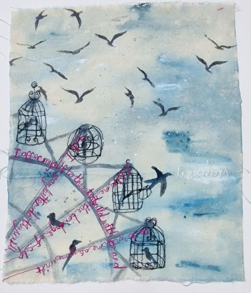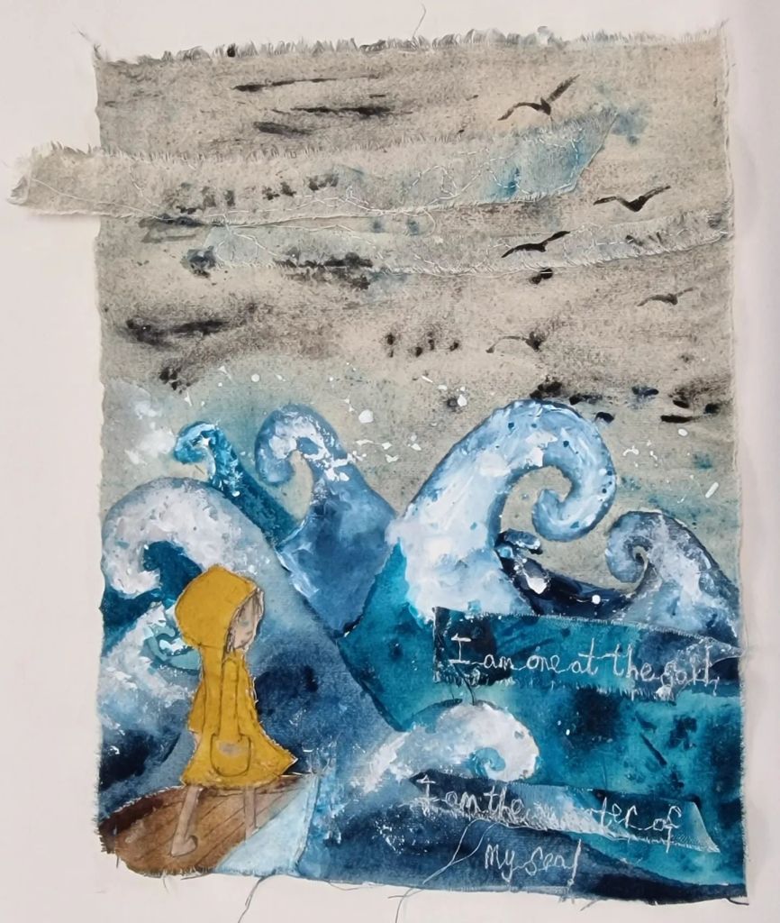 On completion of her challenge, Kate has turned her individual appreciations works into a book and an exhibition of originals, entitled “Turning Tides”, held on 21st June to coincide with the Surrey Artists Open Studio week. The exhibition was held over the ‘summer solstice’, celebrating a moment in time, a sign of new beginnings, the mark of spiritual survival.